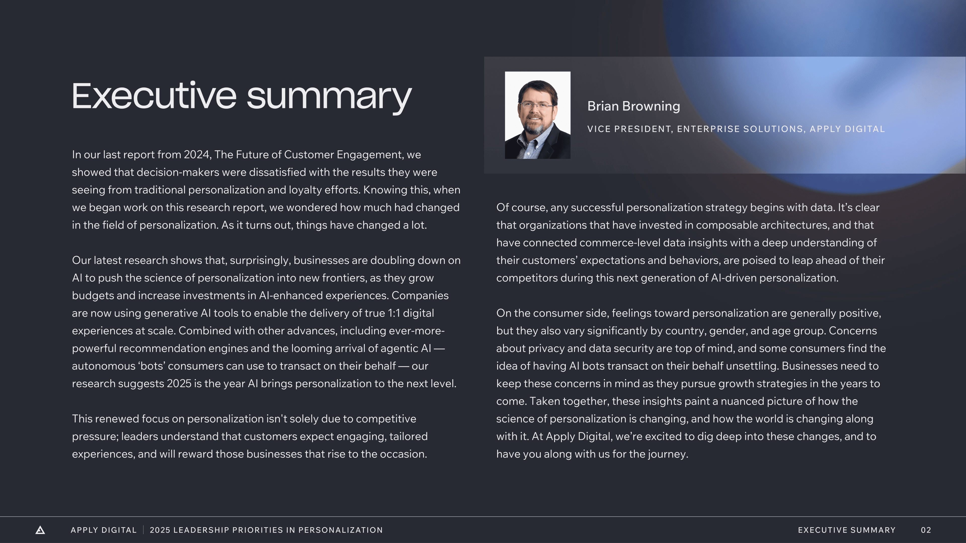 Concludes with a sense of balanced optimism - acknowledging both the opportunities and responsibilities in the future of personalization.