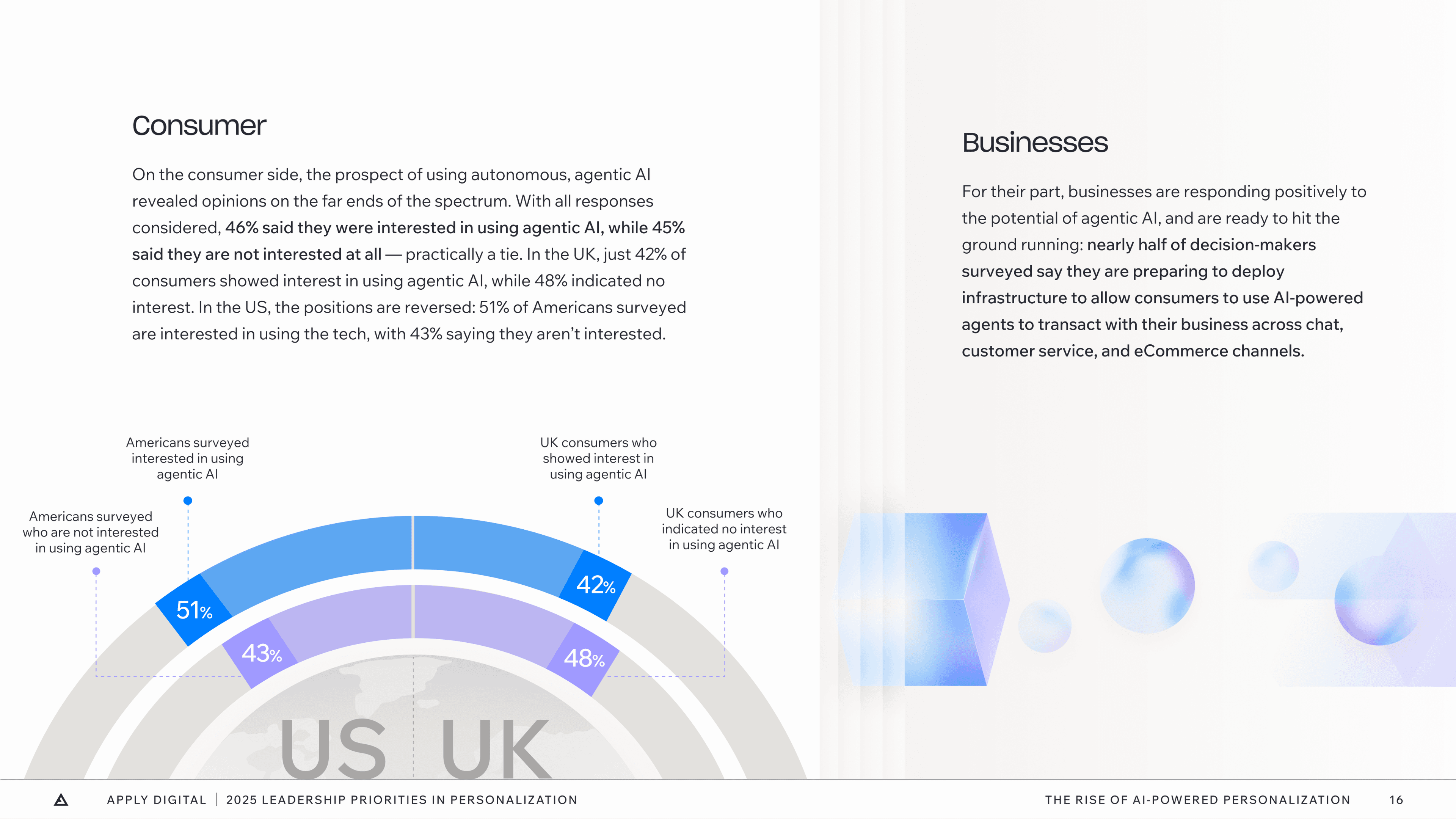 • Amber transitioning to steel blue - Reflecting the balance between consumer enthusiasm (61% willing to share data) and their privacy concerns