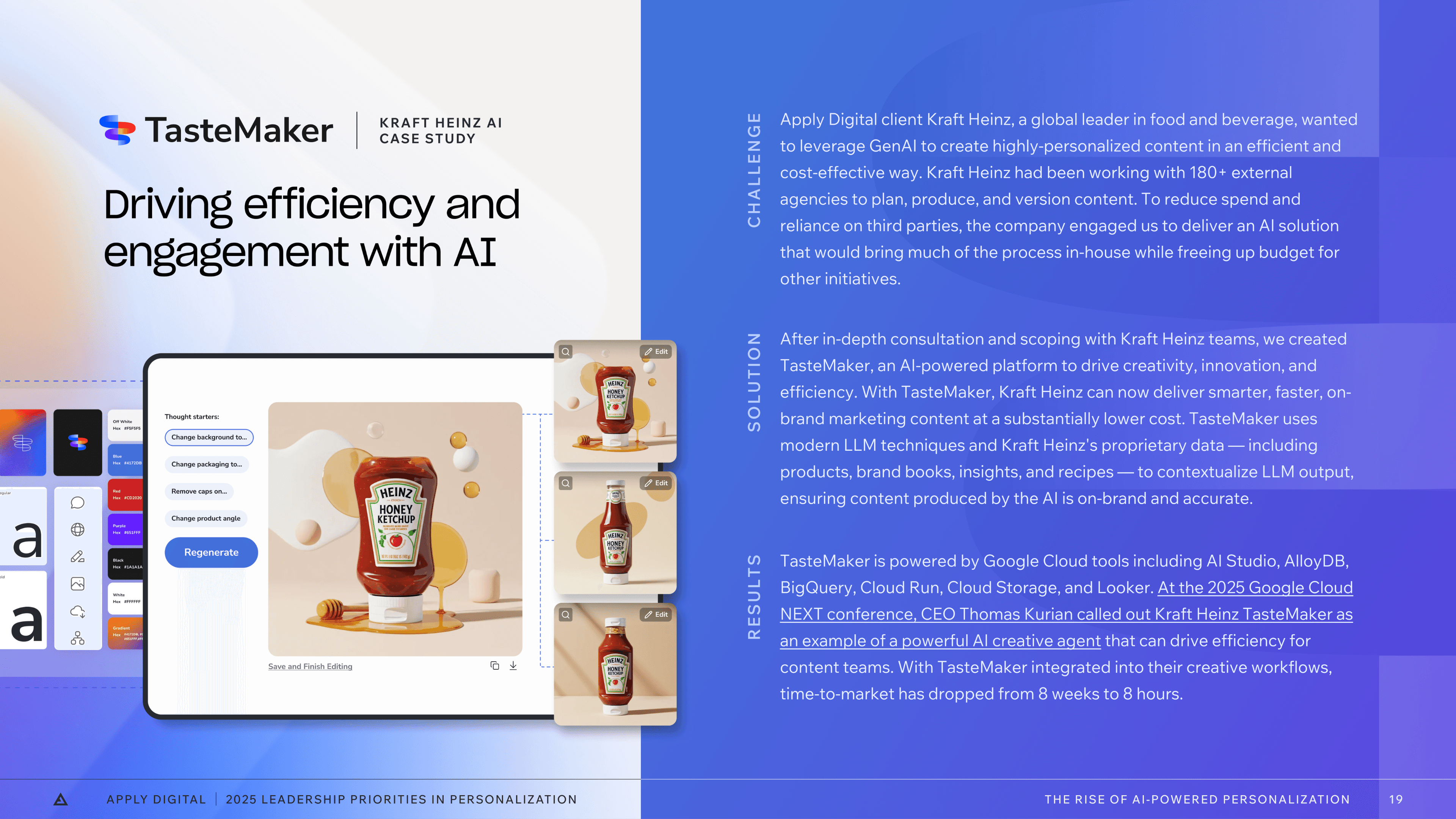 • Vibrant emerald green brightening to gold - Representing growth and investment highlighting the 82% of leaders increasing personalization spending