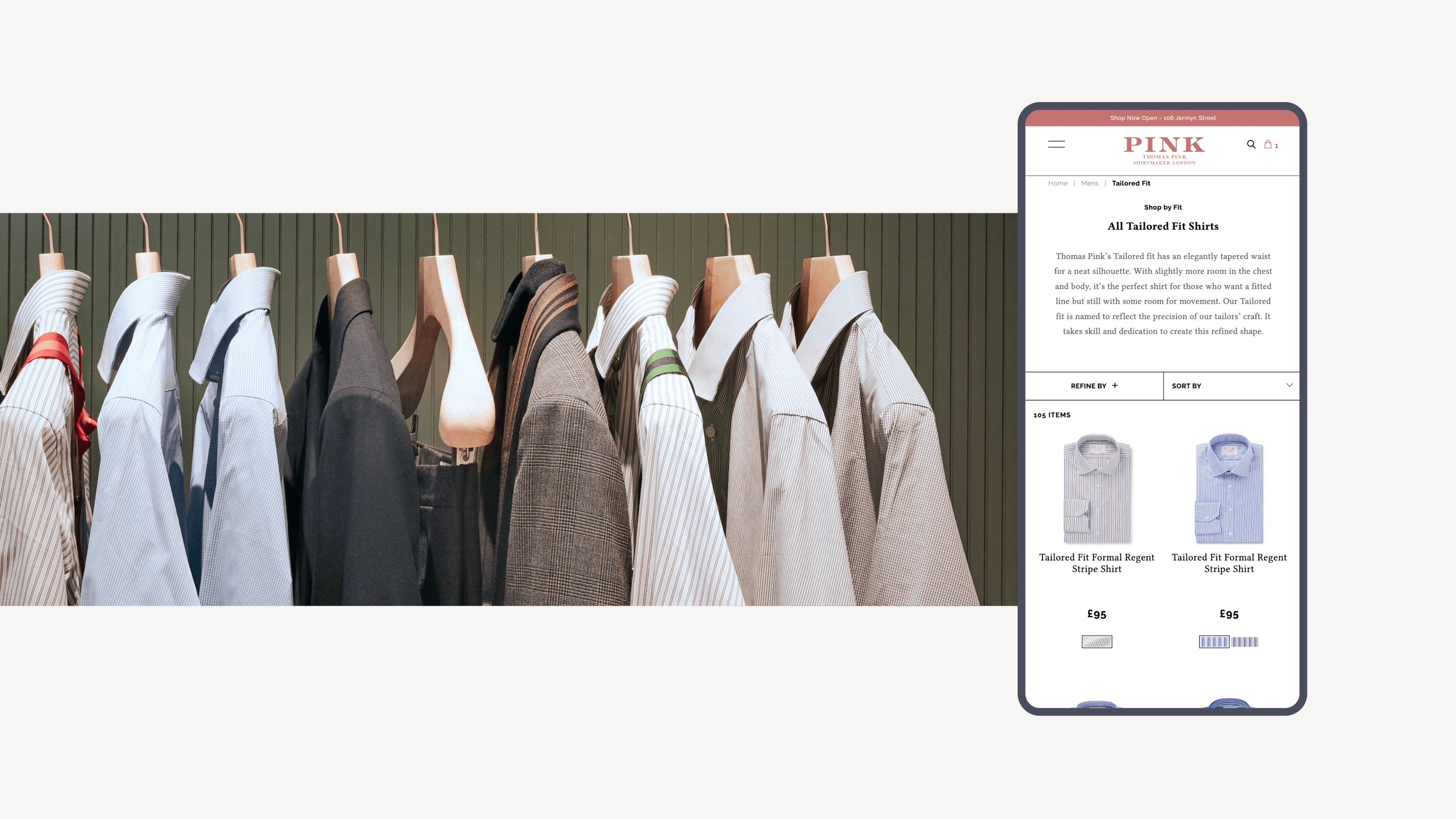 Thomas Pink is a luxury shirt retailer with global name recognition. The objective for this project is to design compelling assets, including hero images, cover pictures, infographics with stats and more, highlighting Apply Digital’s contribution to the noticeable improvement of the customer web experience and sales.