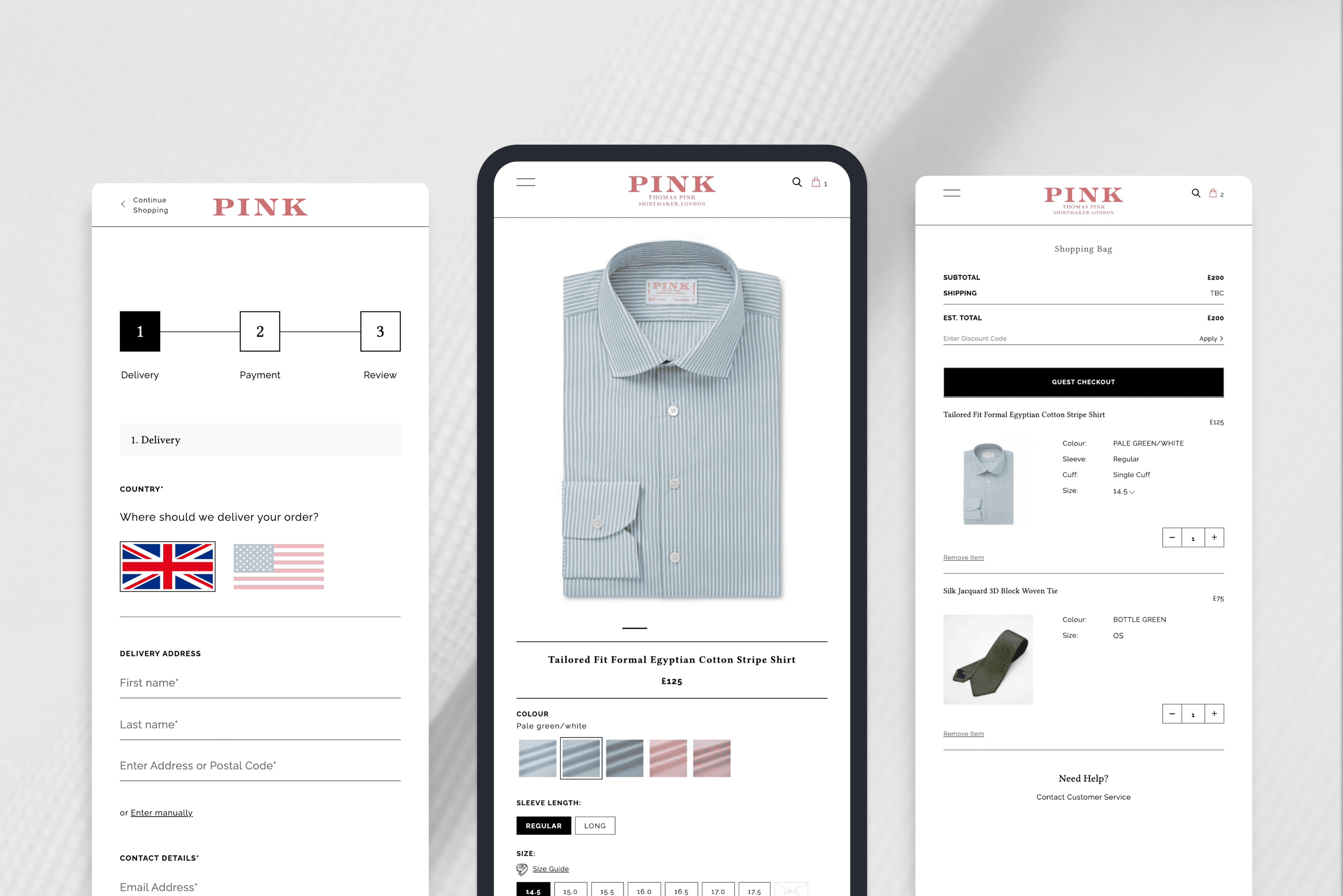 Thomas Pink has well established themselves as a luxurious, high-quality fashion brand. As the main designer of this case study, my work has to reflect and emphasize those qualities by using their signature icons, colours and photography. I took references from different high fashion editorial images, while learning how other eCommerce sites feature their products in an appealing, innovative layout. Hence, I can effectively represent Thomas Pink’s platform can bridge between digital and physical shopping experiences.